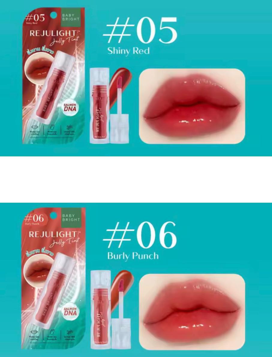 增添豐盈感,讓您的雙唇看起來像豐唇效果。柔軟滋潤的觸感質地輕盈, 不厚重,顏色美麗而清晰,使用時間越長,唇部就會變得更加甜美和 光澤。來自韓國的創新透明、閃亮的臉部肌膚注射劑含有來 自鮭魚的鈉 DNA 萃取物,注入多汁、閃亮的 Rejulite 唇彩產品中, 讓雙唇充滿彈性和蓬鬆。幫助強化膠原蛋白隨時為雙唇增添水分和 彈性,減少皺紋,讓嘴巴看起來更淺。添加色彩,讓您的雙唇看起來美 麗、飽滿、多汁,看起來自然健康。 使用方法 轉動打開產品蓋。使用刷頭沾取少 許產品,然後將其塗抹在整個嘴唇 上。用手指暈開,上唇超靚,豐唇性感唇,唇唇欲動💋 ❤️ 日期至:2027年5月